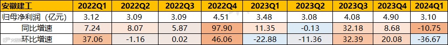 二、安徽建工——2024Q1,实现营收135.38亿元,同比-16.25%;归母净利润3.10亿元,同比-10.75%;扣非净利润2.84亿元,同比-23.52%。