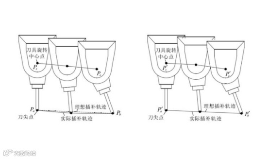 图:关闭RTCP和打开RTCP指令插补运算中心差异