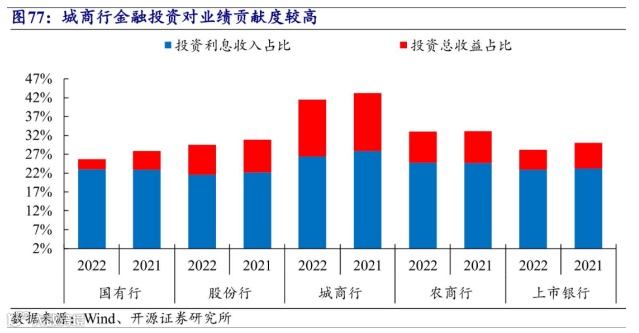图:城商行金融投资对业绩贡献度较高,开源研究所