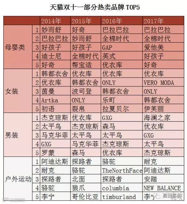 除了3C类电子产品以外,最受欢迎的就要数服装类商品了,盘点了近四年的热销服装品牌,不难发现性价比是消费者们考虑是否购买的首要因素。