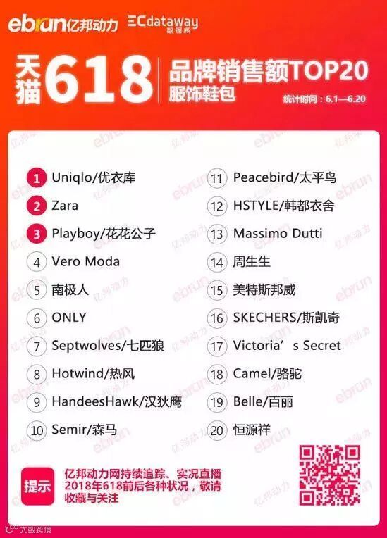 今年的618又是一场拉锯战,京东天猫两大电商巨头的“战期”都长达20天。在电商平台流量红利干涸的状况下,今年有哪些服饰商家杀出重围,又有哪些商家被敲响警钟?亿邦动力联合数据威为大家整理了今年618的数据榜单。