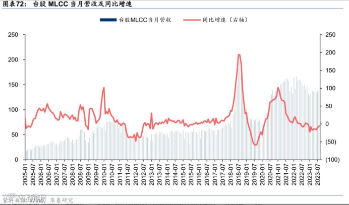 以MLCC为例,2023Q1以来,不同型号与规格的MLCC产品都有所提价,高容产品提价20%-40%不等,低容涨幅10%-20%,主要是因为车用、产业机械用高单价MLCC出货量增加,此外受惠日元贬值,带动日本MLCC出口价上涨,但mlcc企业收入增速仍处于下滑中,整体需求仍旧低迷。