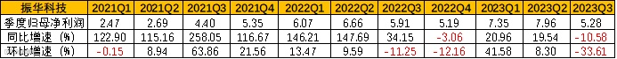 振华科技——2023前三季度,实现收入60.29亿元,同比增长+5.76%;归母净利润20.58亿元,同比增长+10.45%。