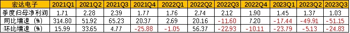宏达电子——2023前三季度,实现收入12.38亿元,同比-26.36%;归母净利润3.86亿元,同比-41.69%。下游需求不足叠加部分产品面临降价压力 ,导致收入、利润双降。
