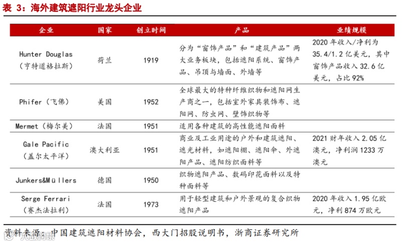 图:海外建筑遮阳行业龙头