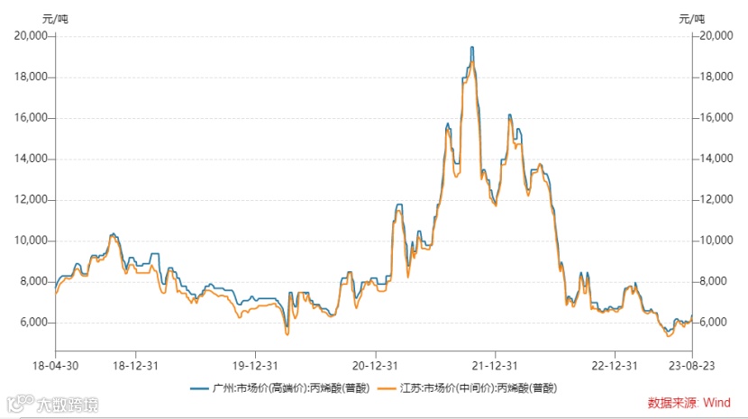 图:丙烯酸价格 (单位:元/吨)
