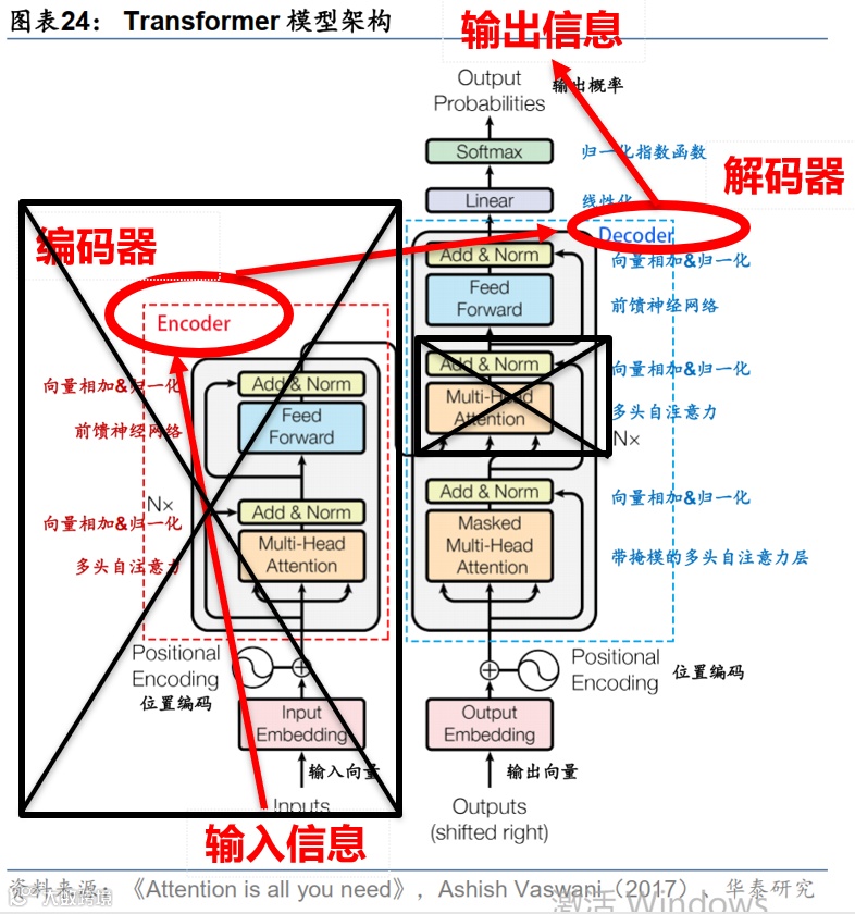其中的Decoder only,就是GPT之所以能够爆发,所依赖的核心技术。