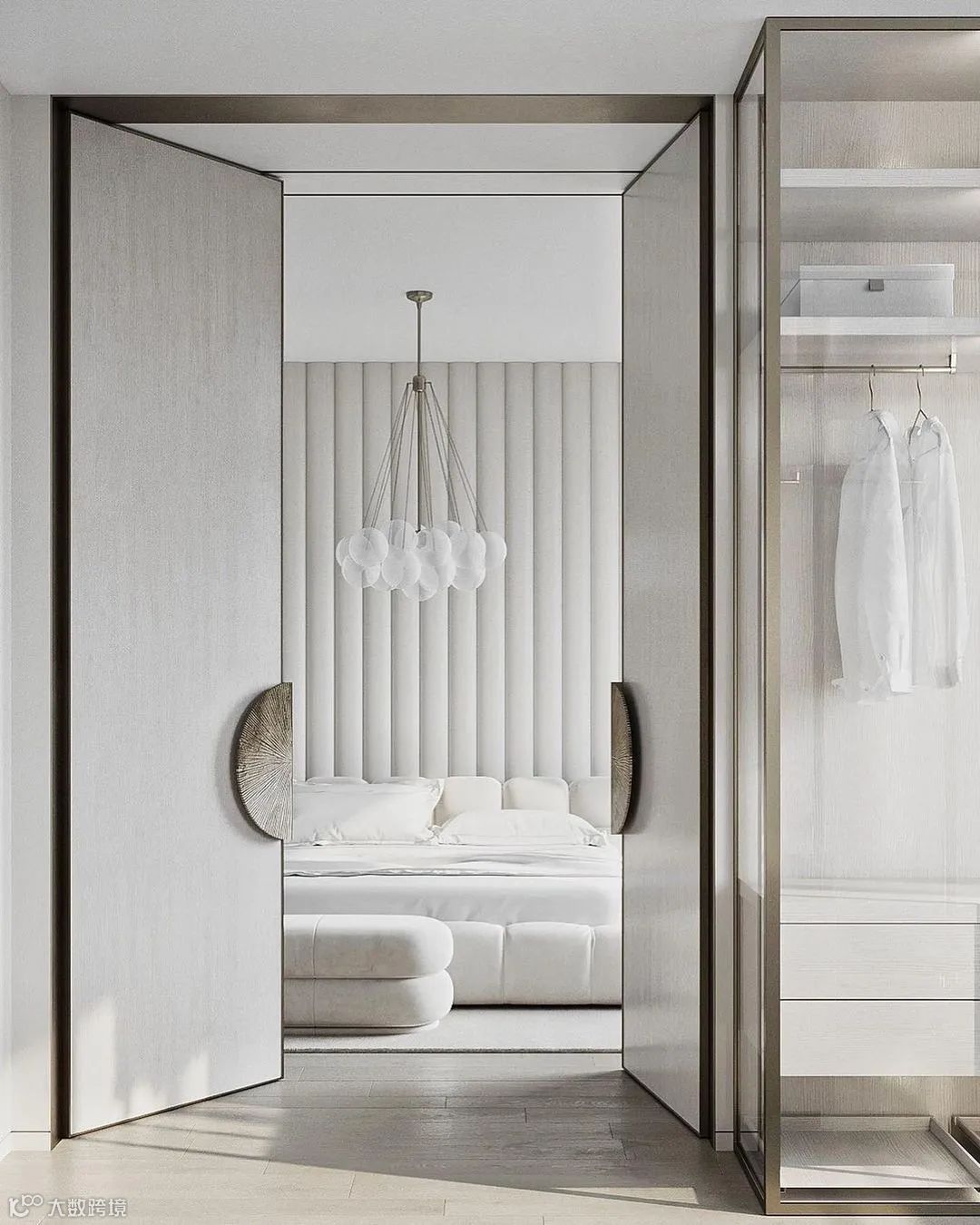 从一开始,业主的信息就很明确,希望拥有一个大大的步入式衣帽间,空间布局零浪费利用率高,增加了收纳储物的功能且让区域非常有气质。