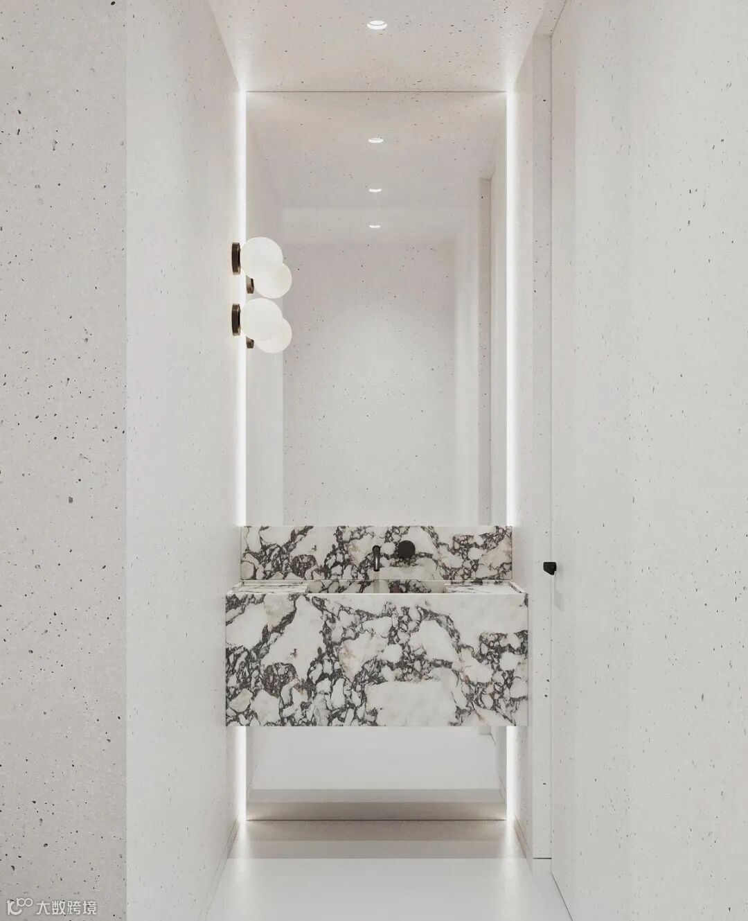卫生间设计简洁,大理石的洗手台,没有储藏空间,每一个细节都是按订单制作的,纹理的层次感,精致与优雅完美呈现。