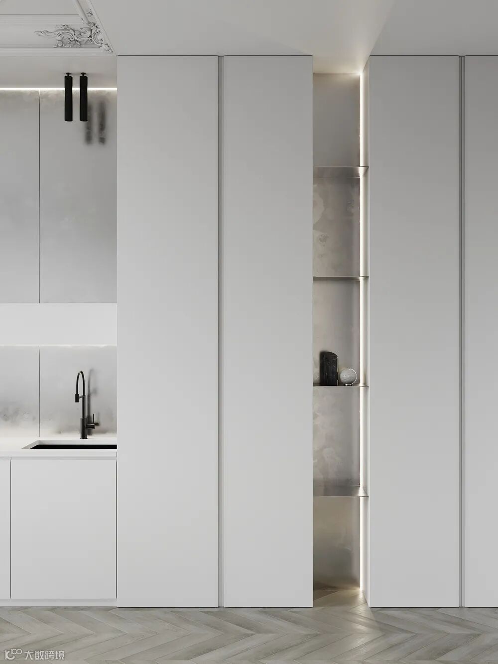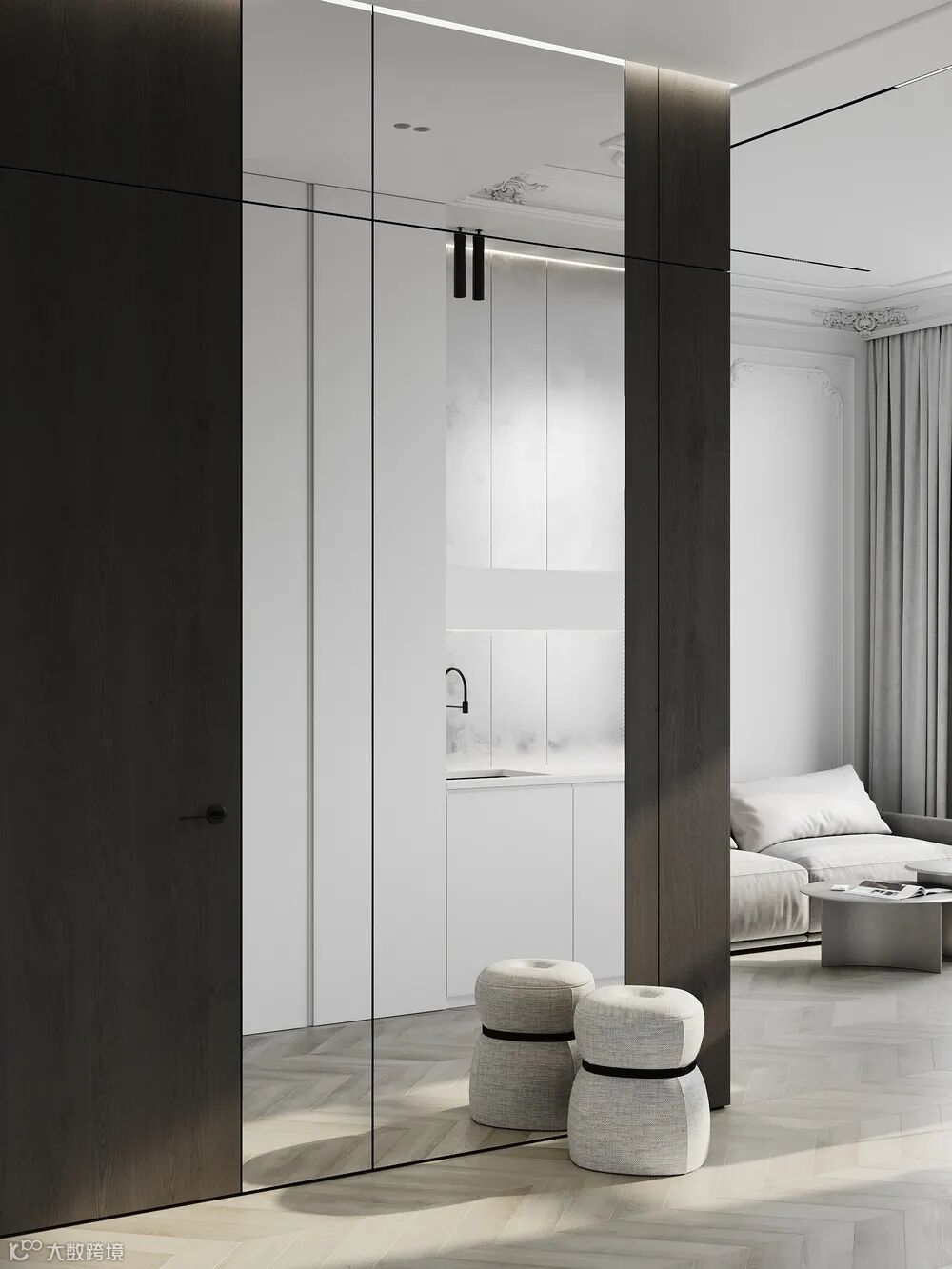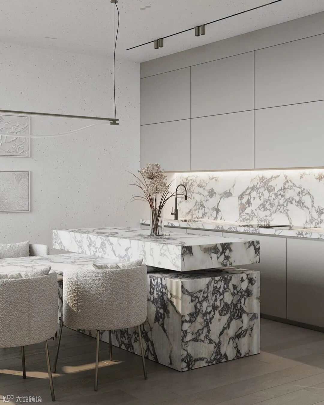 Quadro Room新作,190㎡大平层设计,空间内敛而不失优雅,简约而不简单,从各个细节中流露主人的不俗品味。