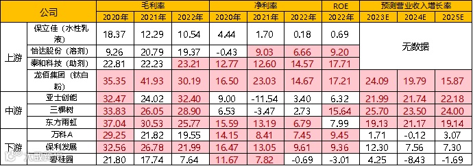 机构对中游未来增长预期更好一些。墙面涂料的主要驱动力预计会由新房交付变为存量建筑物的重新涂装(即重涂)。因此,虽然机构对下游房企未来增长预期不好,但对中游的未来增长预期仍较好。