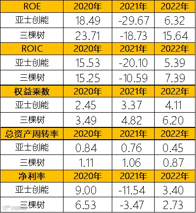 从收入规模来看,2022年,三棵树(113.38亿元)>亚士创能(31.08亿元)。