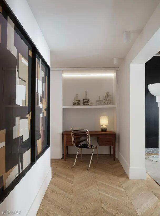明暗之间的微妙关系创造了一个平衡的方案,色彩瞬间通过艺术品注入室内,优雅而精致。