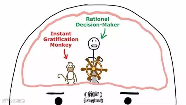 两张是有一点不同,两个大脑都有一个理性决策人,但在拖延症患者的大脑里,还有一个及时行乐的猴子。