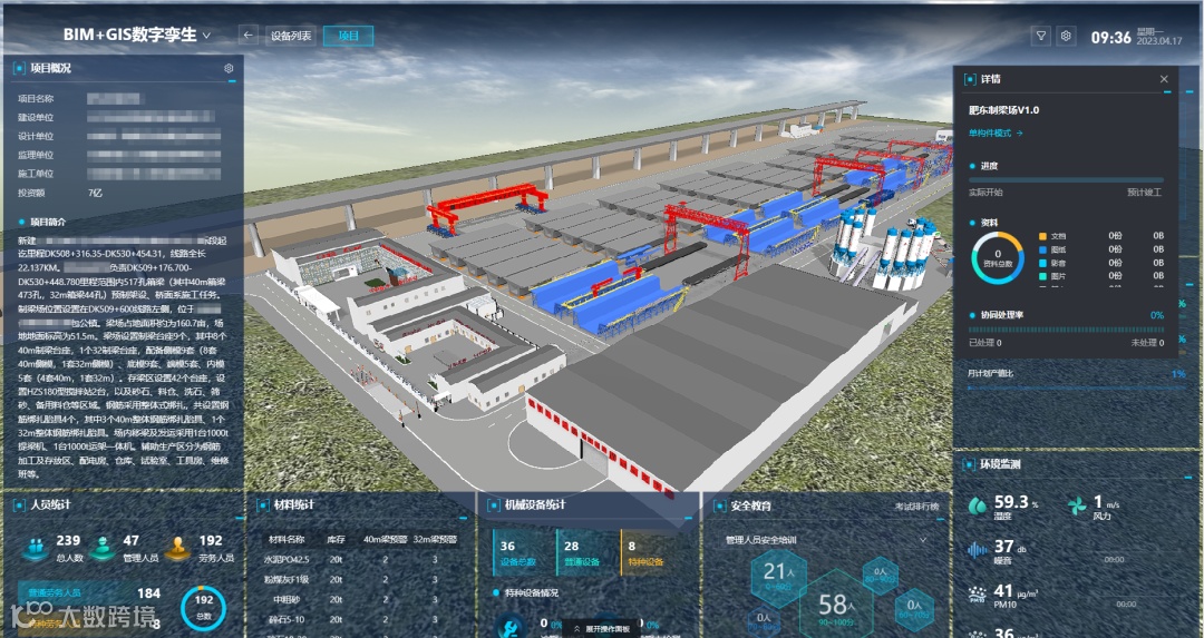 平台围绕施工现场的人、机、料、法、环等关键要素,综合运用物联网、云计算、大数据、人工智能、移动和智能设备等软硬件信息化技术,对在建项目施工安全、施工质量、施工进度、绿色施工等方面实时监控,集中统一平台管理。