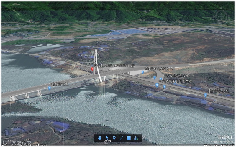应用点一:通过GIS系统,可以清楚的观察到项目周围的地理信息情况,将BIM模型转换成fbx格式导入到图新地球,便于了解周围建筑布置和交通路网情况,更加直观的显示出工程竣工后的实际情况。