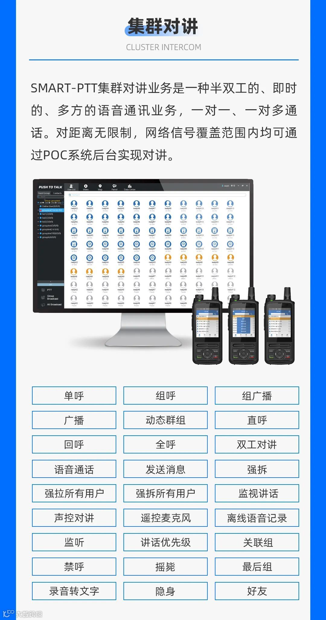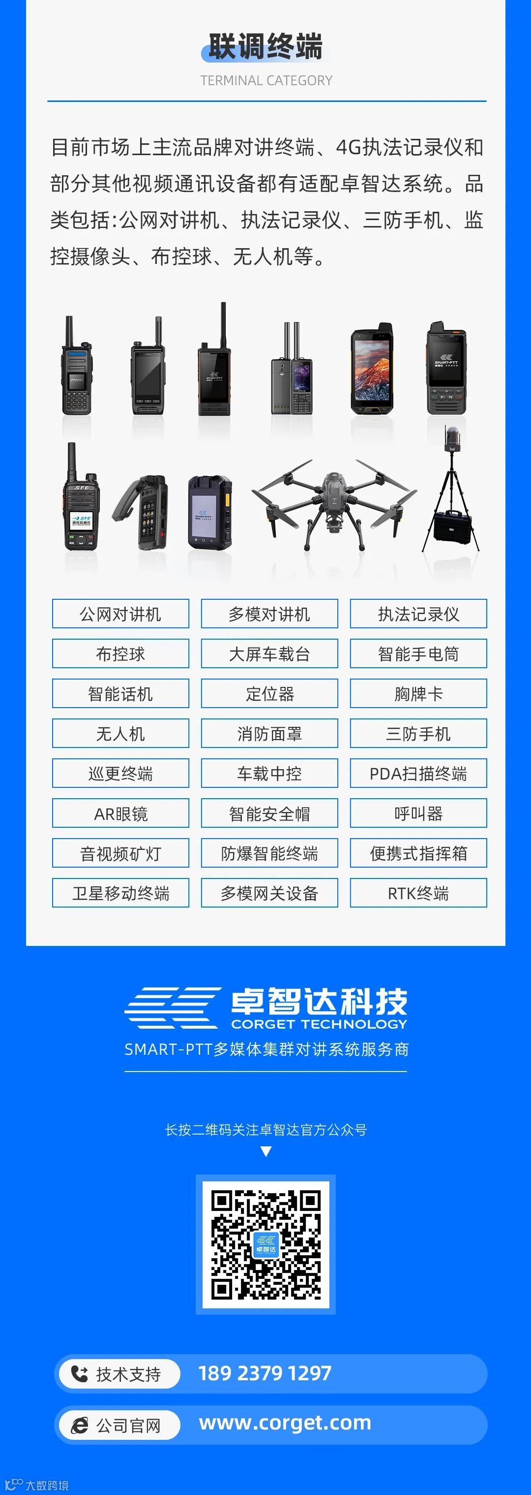 卓智达提供全球公网对讲系统通信软件服务商。系统集成了融合通信、指挥调度及行业应用,实现全国对讲、视频应用、地图定位、巡更巡检、移动设备管理等。