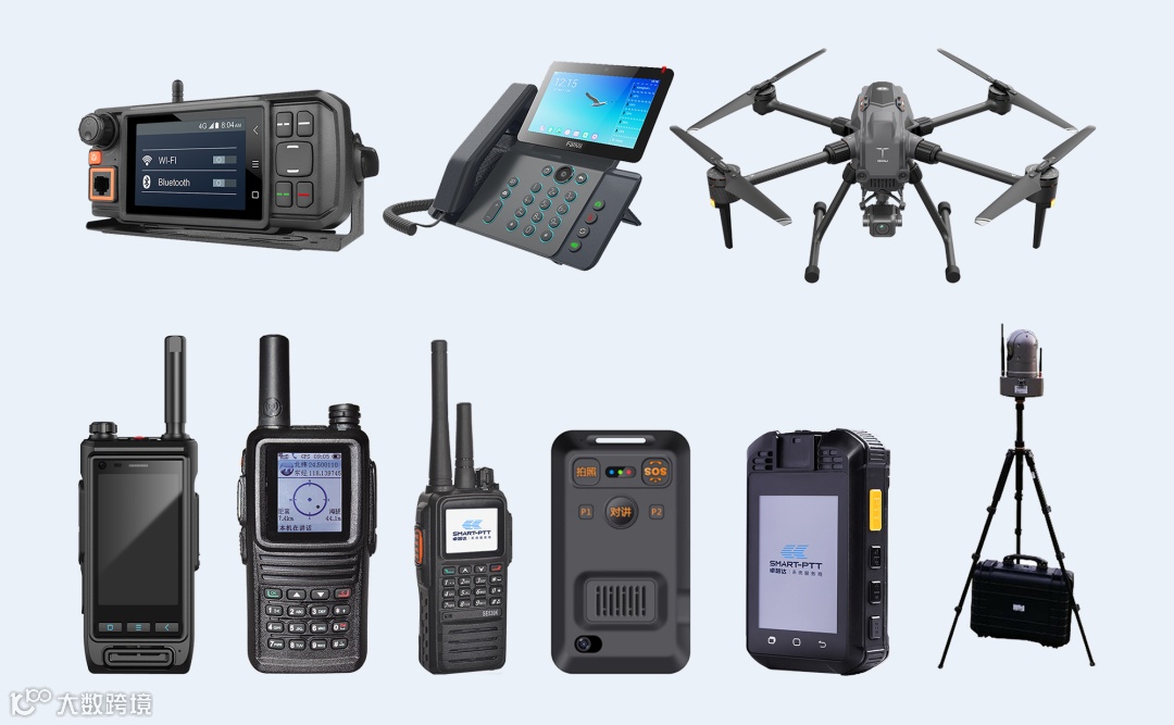 平台上可以挂载多种类终端,例如公网对讲机、智能手电筒、多模对讲机、卫星移动终端、执法记录仪、智能话机、巡更终端、布控球、定位器、RTK终端、智能安全帽、胸牌卡、三防手机、行业平板、无人机等,并且能互联互通。