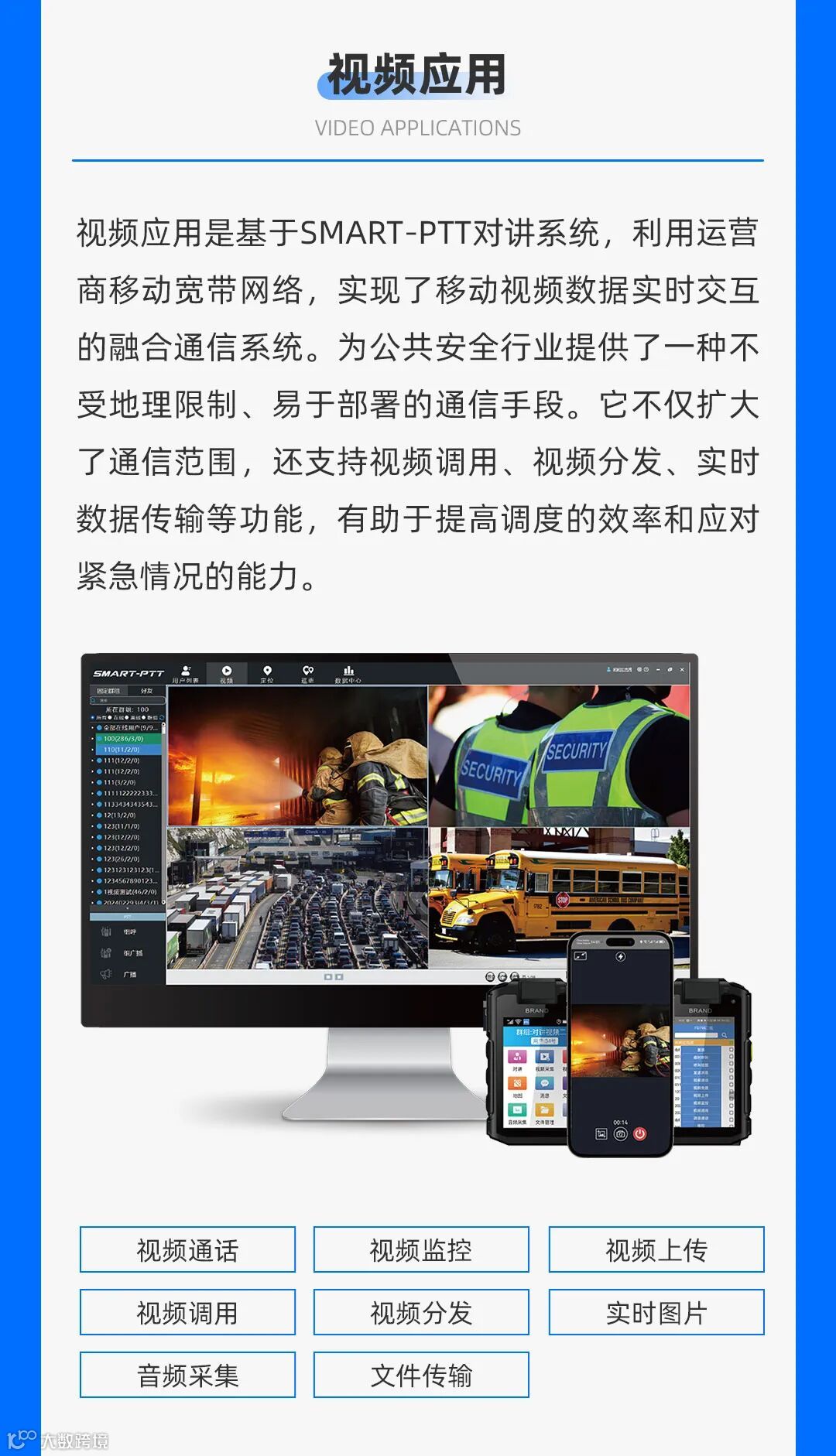 SMART-PTT多媒体集群对讲系统——对讲业务系列化功能。利用VoIP(Voice over Internet Protocol)技术,基于无线数据网络的对讲语音通讯系统,是一种半双工的、即时的、多方的语音通讯,支持一对一、一对多通话模式。
