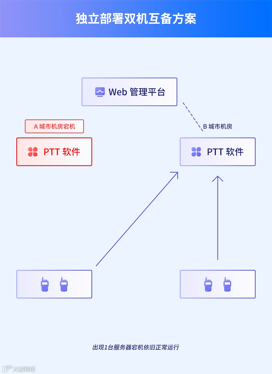 该方案是指独立部署项目,配备 2 台或者多台服务器运行使用,当一台服务器出现宕机、断电等不可抗拒灾害时,双机中的其他台服务器将自动接管停机服务器的业务,从而在不需要人工干预的情况下,保证系统能持续提供服务。