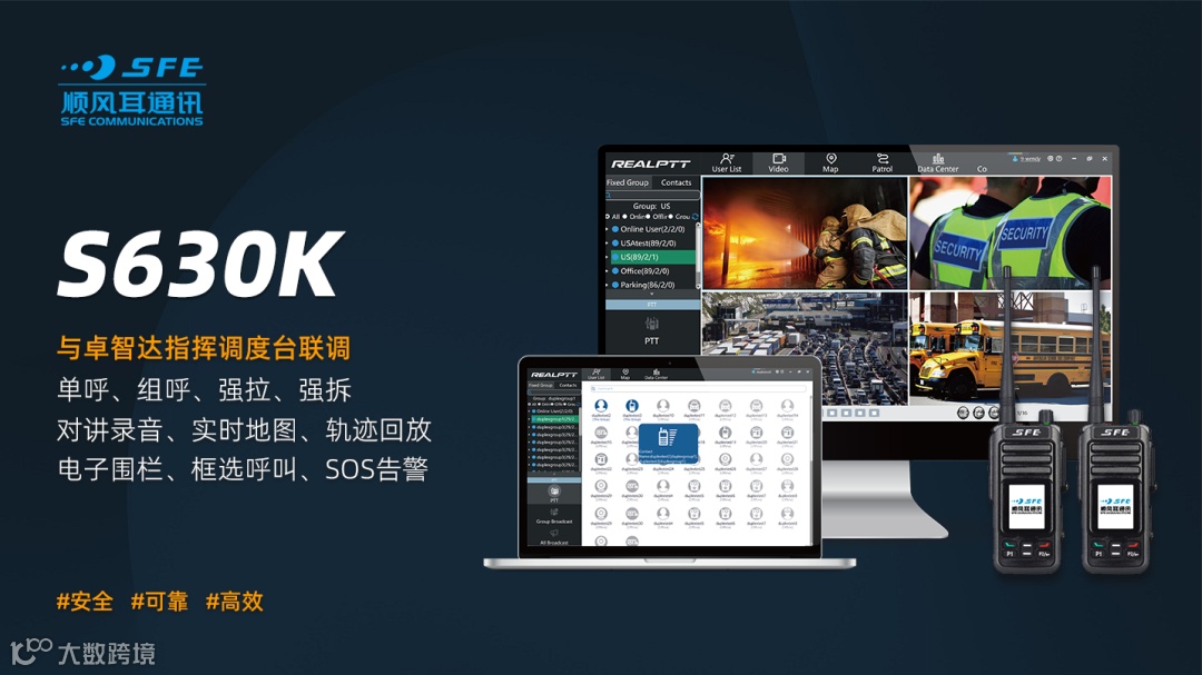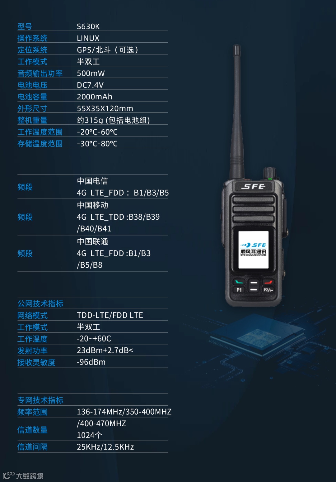 顺风耳S630K是一款集成了公网和专网多种模式的对讲终端。它的设计理念在于提供更加灵活的通信选择,在有公网的环境下用公网对讲,在没有公网的环境条件下使用专网对讲,S630K能够保证通信的连续性和稳定性。此外,能使公网和专网互通,其独特的双模功能使得用户可以轻松地从模拟系统切换到公网系统,在关键时刻保障通信能力。