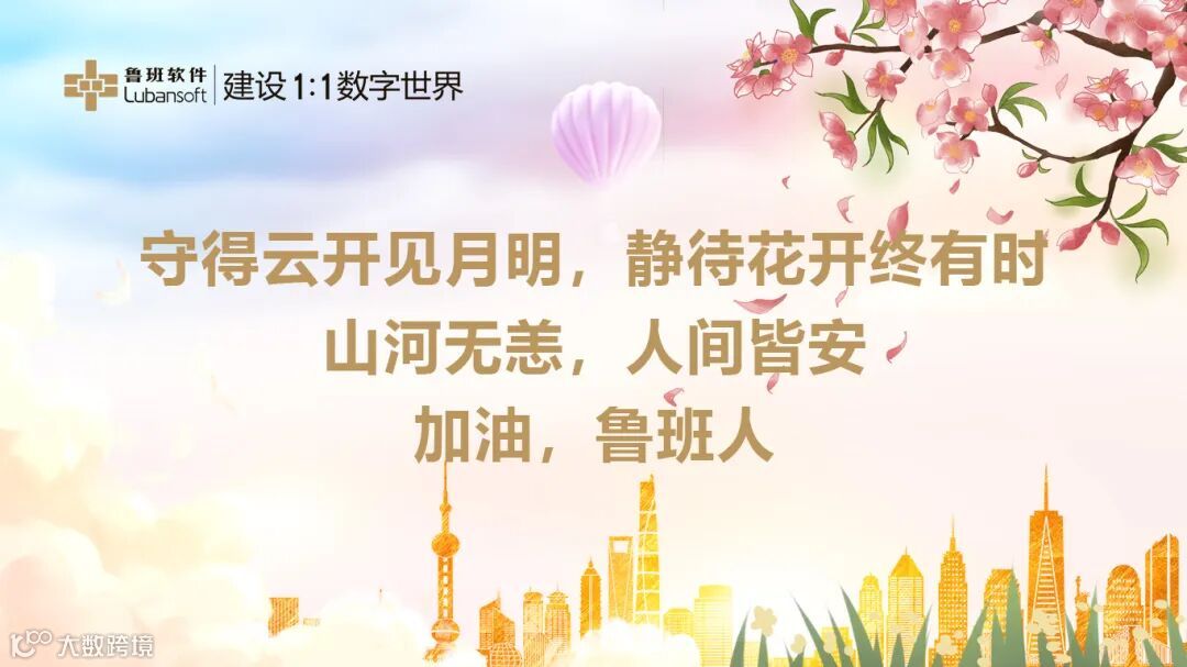 面对巨大的历史机遇和挑战,全体鲁班人将不忘初心,不断提升学习能力和解决问题的能力,持续为鲁班客户提供优质的服务和产品,传承鲁班精神,争分夺秒,全力以“复”,践行“建设1:1数字世界”的伟大使命,努力成为数字中国建设的关键力量!