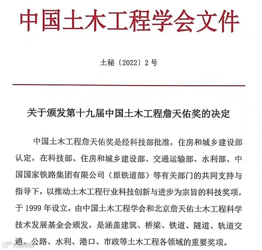 中国土木工程詹天佑奖是经国家科学技术部批准、国家住房和城乡建设部认定,是我国土木工程领域科技创新的最高荣誉,以奖励和表彰在科技创新特别是自主创新方面成绩卓著的优秀项目为宗旨。获奖工程在规划、勘察、设计、施工、科研、管理等技术方面具有突出的创新性和较高的科技含量,积极贯彻执行创新、协调、绿色、开放、共享的新发展理念,在同类工程建设中具有领先水平,经济和社会效益显著。今年全国建筑工程领域仅有13项杰出代表工程获奖,成都露天音乐公园项目经过多轮激烈评比,成功当选。