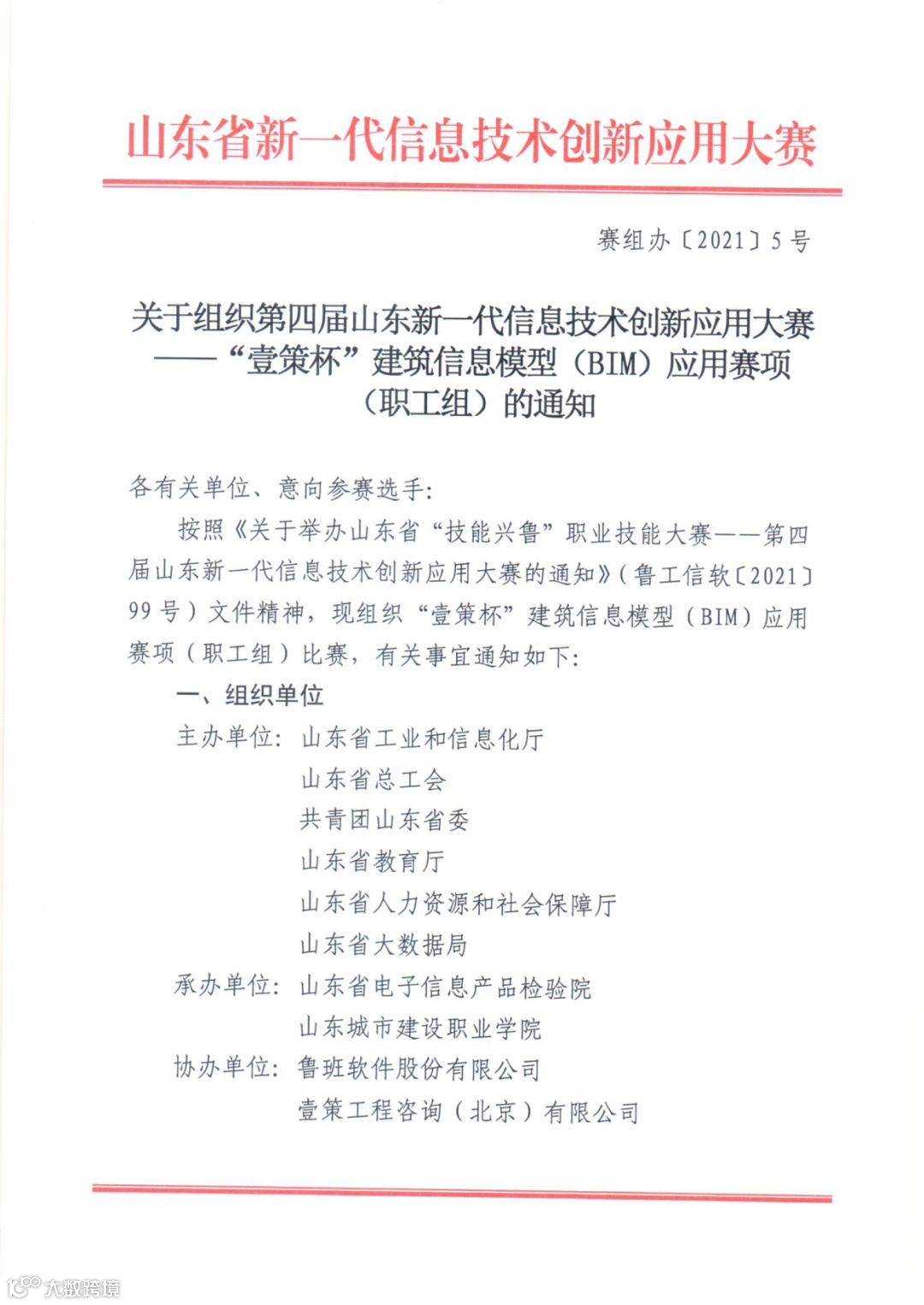 本次大赛由山东省工业和信息化厅、山东省总工会、共青团山东省委、山东省教育厅、山东省人力资源和社会保障厅、山东省大数据局共同主办。