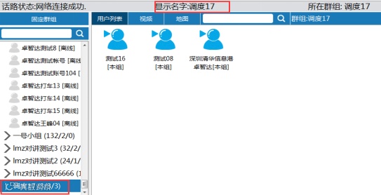 按住shift键选择多个在线成员,然后右键点击“建立动态群组”、“PTT呼叫”,即可临时新建一个动态群组,以创建动态群组的账号的名字来命名该动态群组。双击进入其他群组,临时群组解散。
