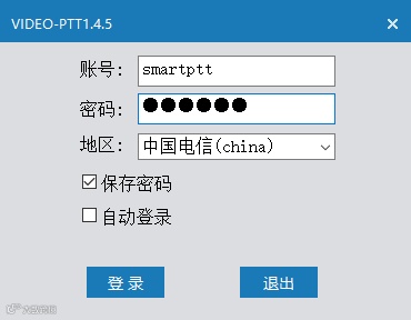 5.打开调度台软件VIDEO-PTT,会自动识别加密狗上绑定的账号。不需要登陆时,将加密狗从电脑上拔掉。