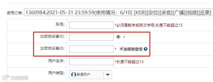 4.在企业平台找到用户修改密码栏,勾选“加密狗登陆”在加密狗设备ID这一栏填上读取到的设备ID。