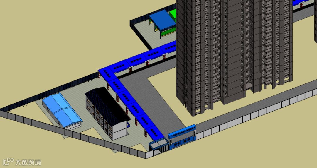 三维场布模拟。利用鲁班BIM技术辅助场地的动态化布置,建立标准化和定型化族库,充分考虑其占地面积及高度,快速布置场地;BIM技术应用可以精细化表达施工空间冲突指标,完善场地布置方案,使平面布置方案更科学、更合理,可减少后期场地变更,节约施工成本。