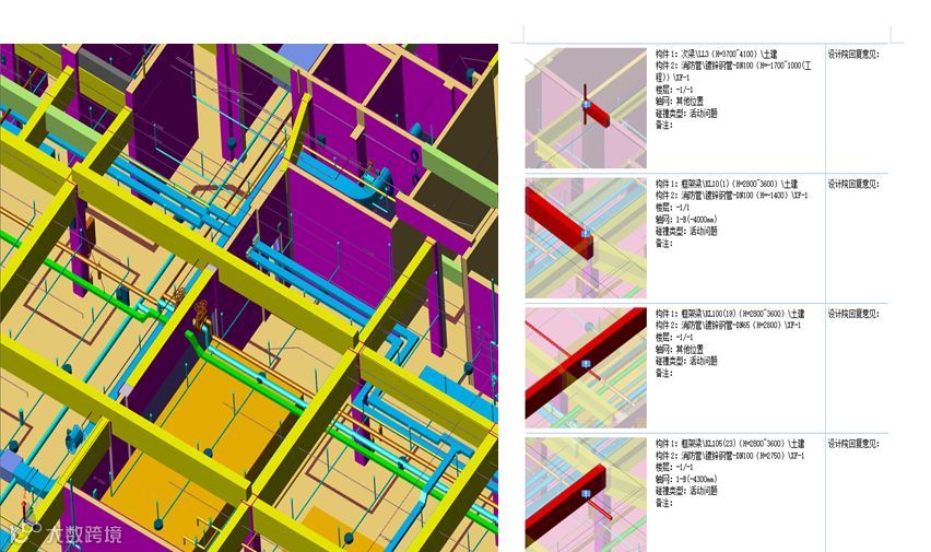 可视化图纸会审。通过CAD与BIM软件结合,提前进行可视化图纸会审,提前发现建筑、结构、机电安装等多专业图纸问题,减少交底时间,加快图纸问题解决周期,节约时间成本。