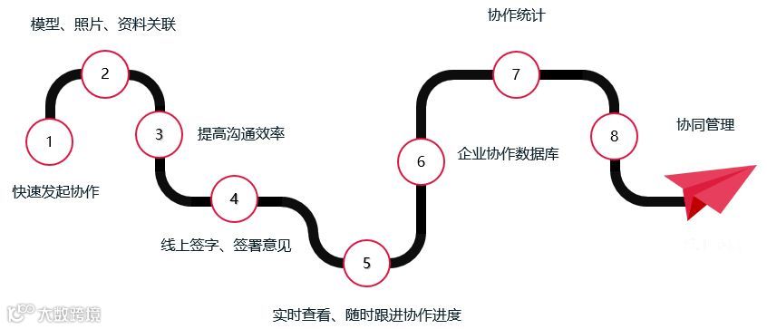 鲁班协同实现了施工过程中协作工作的完整闭环,从协作发起到最终实现管理功能,有一整条闭环路径。
