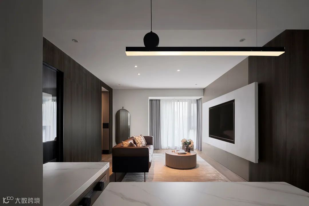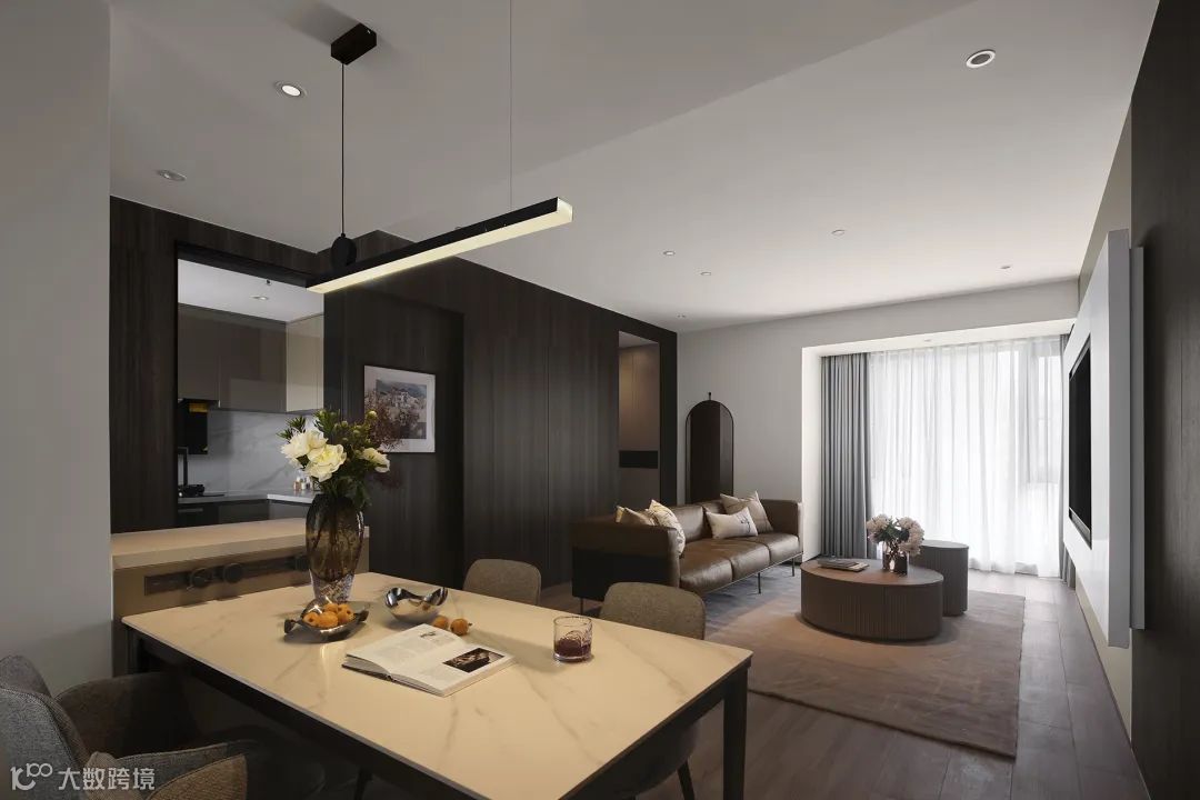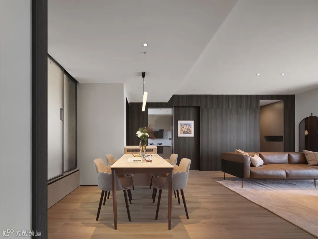 客餐厅一体的格局,开阔通透,极具纵深感,给人带来视觉上的放松。