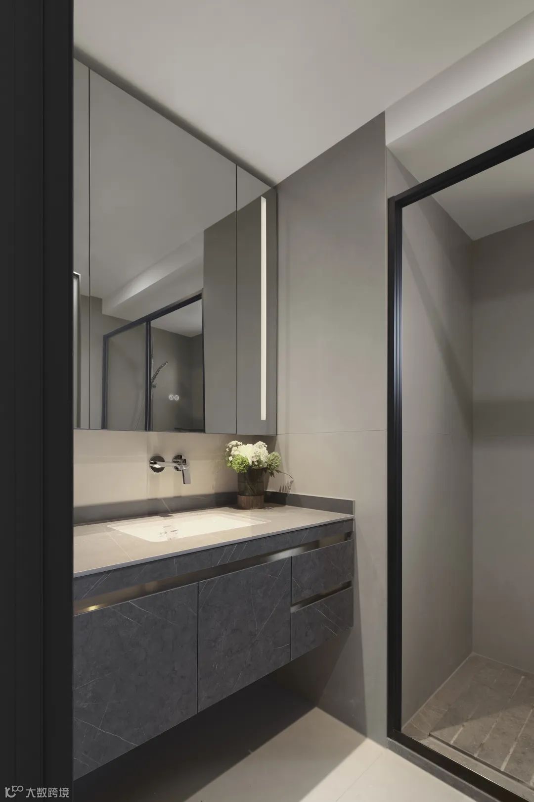 主卫拥有良好的采光通风,选用沉稳的灰色调,内敛克制。