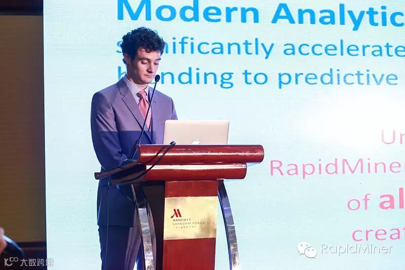 接着 John Heath 先生介绍了 RapidMiner 的历史和产品,并展示了RapidMiner Studio 的直观而视觉化的GUI界面和一些基本流程,RapidMiner 从流程设计到部署完全实现了零代码设计分析流程,为商务分析师们解决他们的隐痛-花太多时间解决编程问题,加速了他们发现洞察的时间,让企业在充满的竞争的环境中飞速地将时间转化为价值。RapidMiner China 的两名数据科学家也在随后展示了一些行业应用案例。