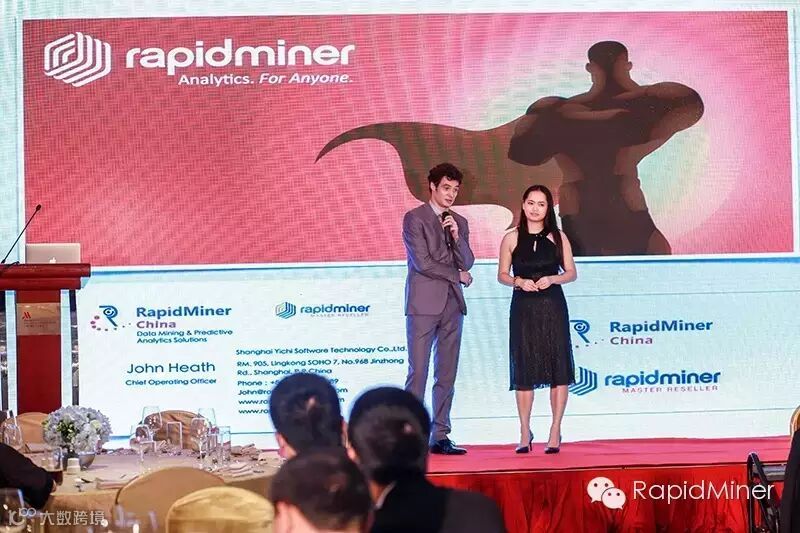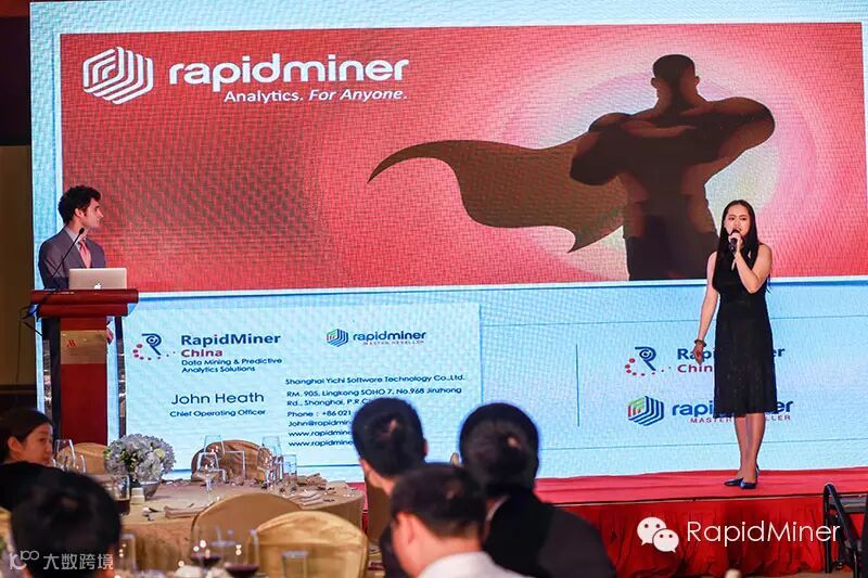 RapidMiner China的 CEO 姚佳伦女士和 COO John Heath 先生首先进行了欢迎致辞,讲述了他们为什么选择做 RapidMiner 的中国大陆和香港的总代理以及他们的愿景:希望能够运行现代分析技术发现企业的大数据中隐藏的洞见,让企业能够真正从他们的大数据中获益,做数据驱动的决策,助力中国的制造业。席间,RapidMiner 创始人兼 CTO Ingo Mierswa 博士也通过视频表示了对RapidMiner China 发布会的祝贺。