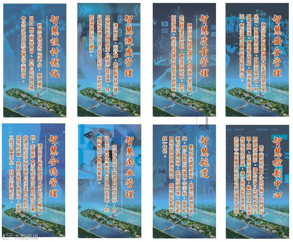 信江航运枢纽项目按照“互联网+智慧建造”发展新思路,通过BIM技术和物联网技术应用,建立三维信息可视化BIM模型,并基于BIM模型、GIS地理信息模型、物联网和感知网络等建立项目管控平台,以分项工程为精细化管控对象,以虚拟施工为技术手段,进行项目质量、安全、进度、成本、档案等可视化、集成化、协同化管理, 推进工艺监测、结构风险监测预警、隐蔽工程数据采集、质量安全检查、远程视频监控等技术在工程建设中的应用。