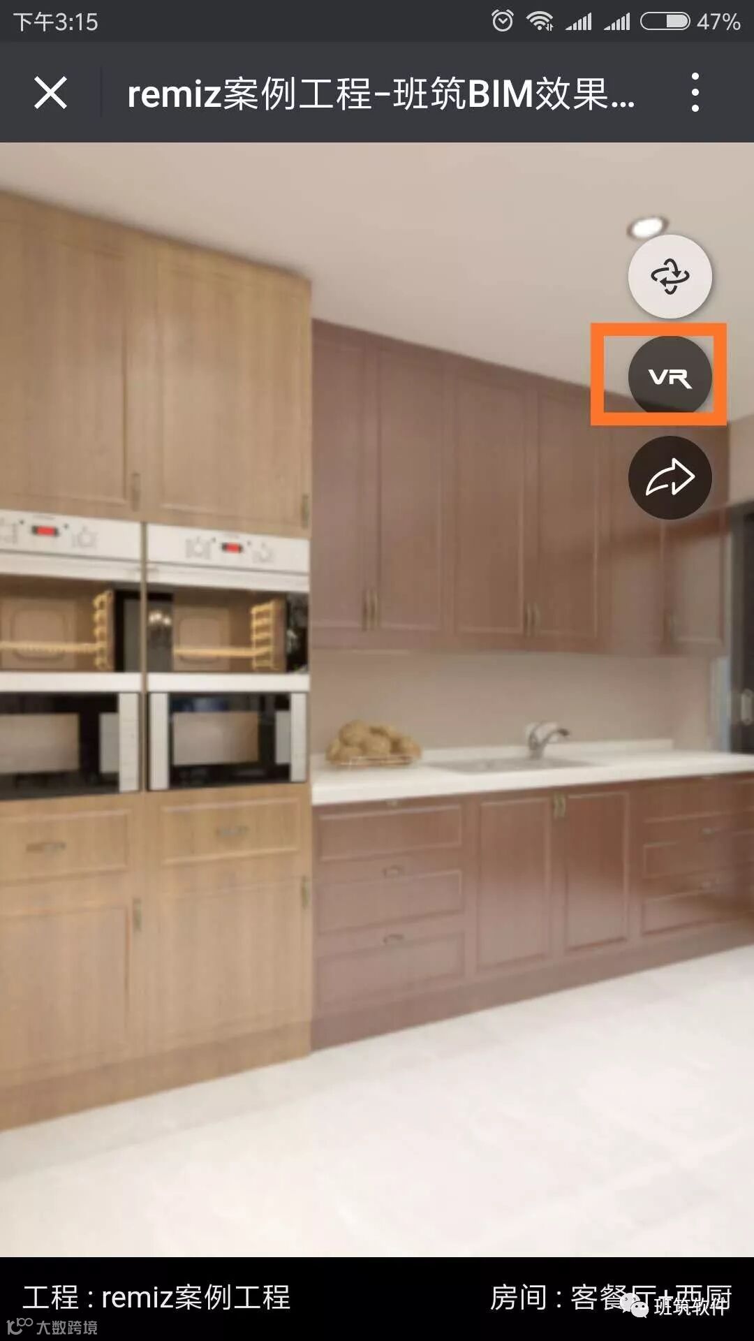 3、使用班筑家装Remiz渲染一张全景效果图,扫码二维码分享至手机游览;