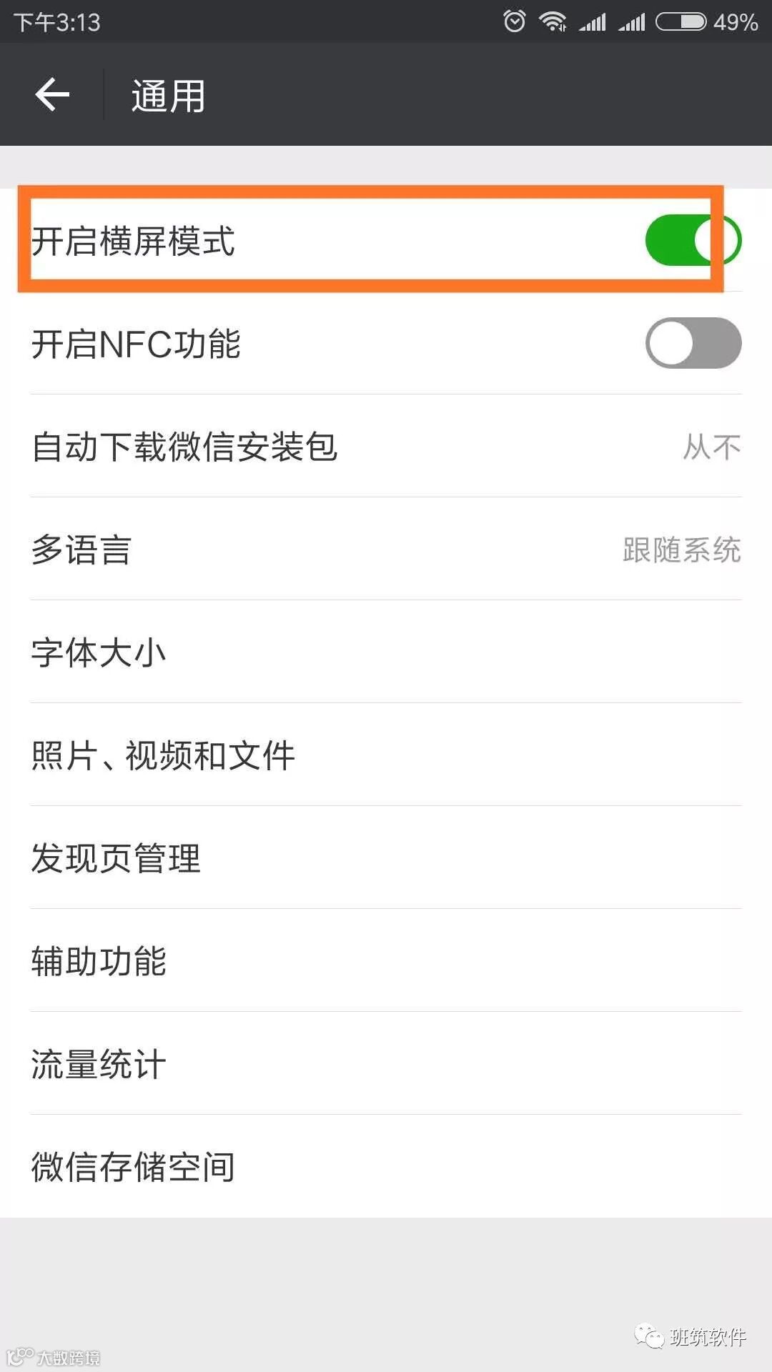 2、微信“设置”→“通用”→“开启横屏模式”;