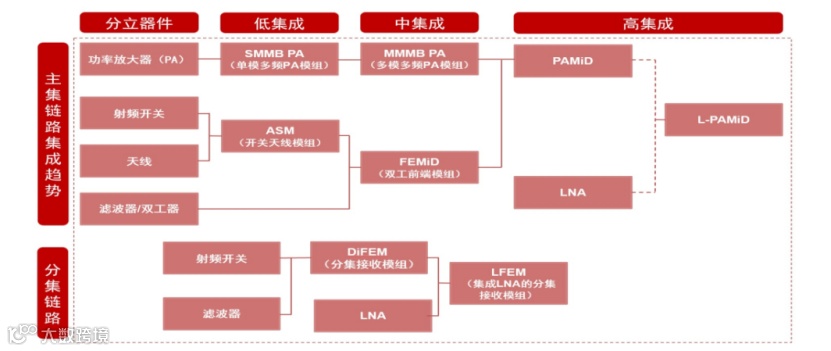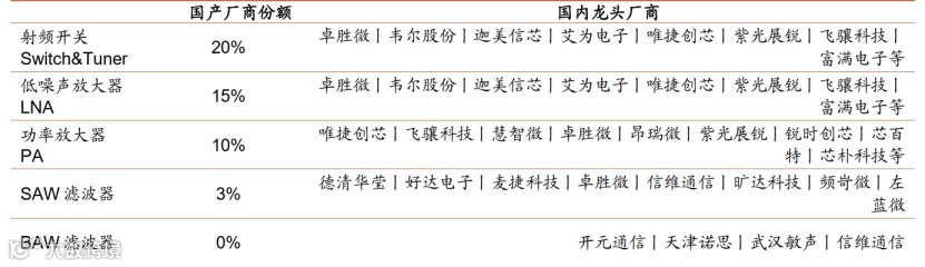 2021年全球射频模组、射频分立器件的市场空间分别为116.3/56.8亿美元,合计173.1亿美元;Yole预计2026年全球射频模组、射频分立器件的市场空间有望分别达………………