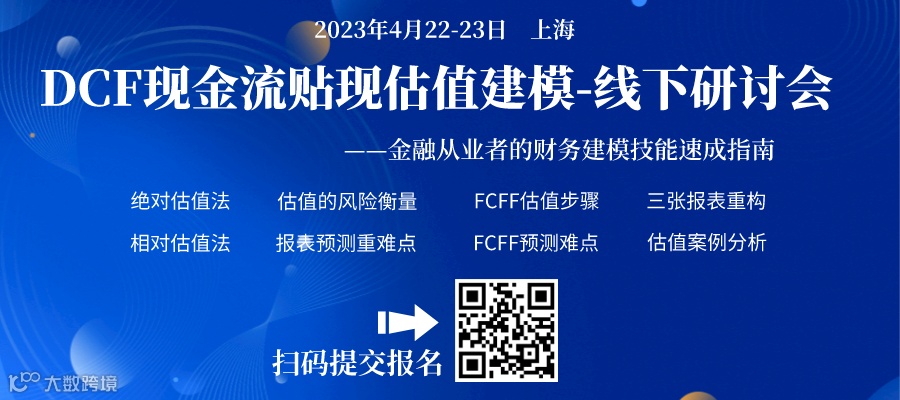 2023年4月22日-23日,我们推出《DCF现金流贴现-建模技能速成指南》线下精品研讨会,纯正的建模干货,全流程快速上手实操,希望能帮大家少走弯路: