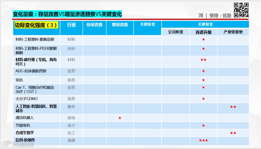1、锂电:麒麟+4680—— 动力电池 | 电解液 | 整车 | 动力总成 | 锂电结构件 | 三元正极 | 锂电铜箔 | 动力电池电池盒 | 锂电设备 | 负极材料 | 锂电正极粘结剂PVDF | 磷酸铁锂正极 | 锂电激光设备 | 碳硅负极 | 动力电池 | 三元前驱体 | 国产整车 | 锂电铝箔 | 软磁材料 | 整线设备 | 隔膜 | 锂电铜箔 | 碳纳米管导电剂 | CTX电池设备 | 充电桩 | 锂电回收 | 动力电池和储能 | 磁性元件 | 增程式电动车 | 精密结构件| 热管理 | 负极材料 | 汽车铝热传输材料 | 单晶三元正极 |球形氧化铝 | 电解液 | 镁合金结构件 | 软包电池 | 高端铜合金 |