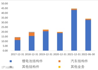 2022年H1,动力锂电池精密结构件/电机铁芯分别同比+130.1%、+142.9%,电池结构件/电机铁芯业务核心客户分别为宁德时代和比亚迪。