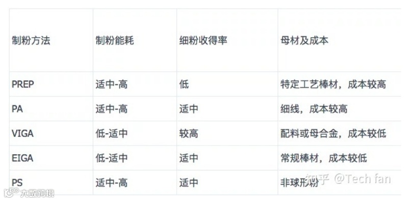 3)增材制造金属粉末:大多采用等离子旋转电极法(PREP)、等离子雾化法(PA)、气雾化法(GA)以及等离子球化法(PS)等。