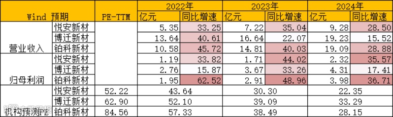 从近几年的利润复合增速来看,博迁新材>悦安新材>铂科新材。