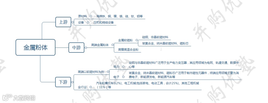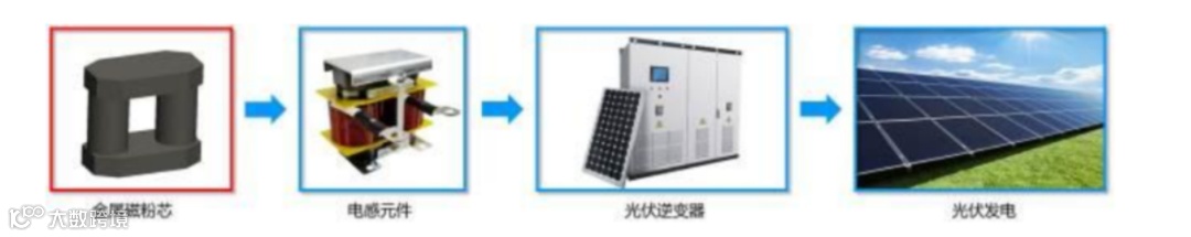金属粉/合金粉→金属软磁粉→金属软磁粉芯→电感→电气、电力应用(包括:UPS、新能源车、光伏、储能等领域)