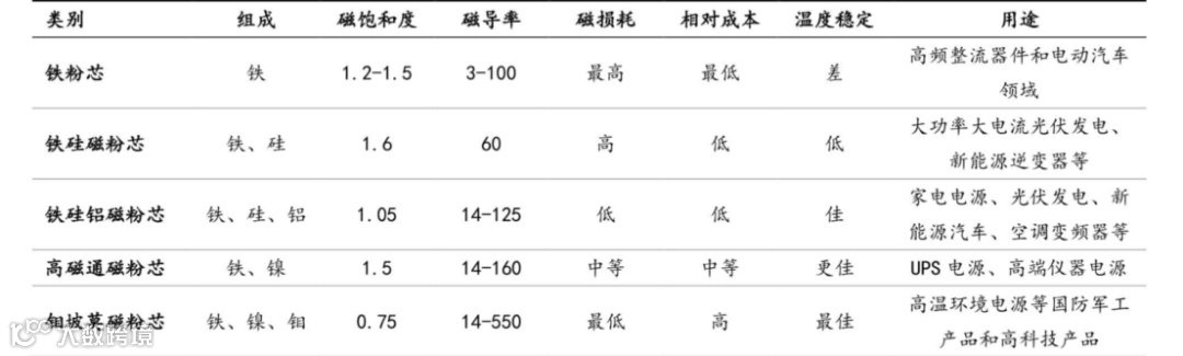 从粉芯细分产品来看,主要是铁硅铬软磁粉芯、铁硅铝软磁粉芯,主要应用于防锈要求高、耐温要求高、价格相对敏感的场景,如家用空调、智能手机、笔记本电脑等。