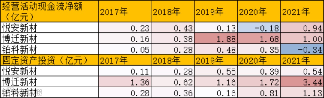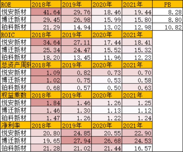 从净资产收益率来看,悦安新材>博迁新材>铂科新材。